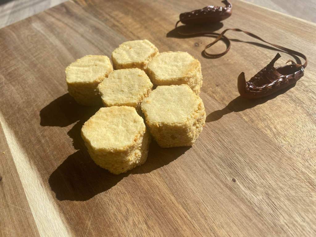 Rich honey and cream between light honey biscuit casings and rolled in biscuit coatings. A classic, indulgent cake that prides itself on difficulty, now in bit sized portions.